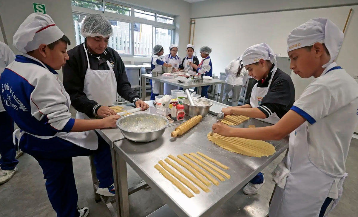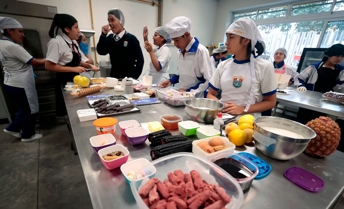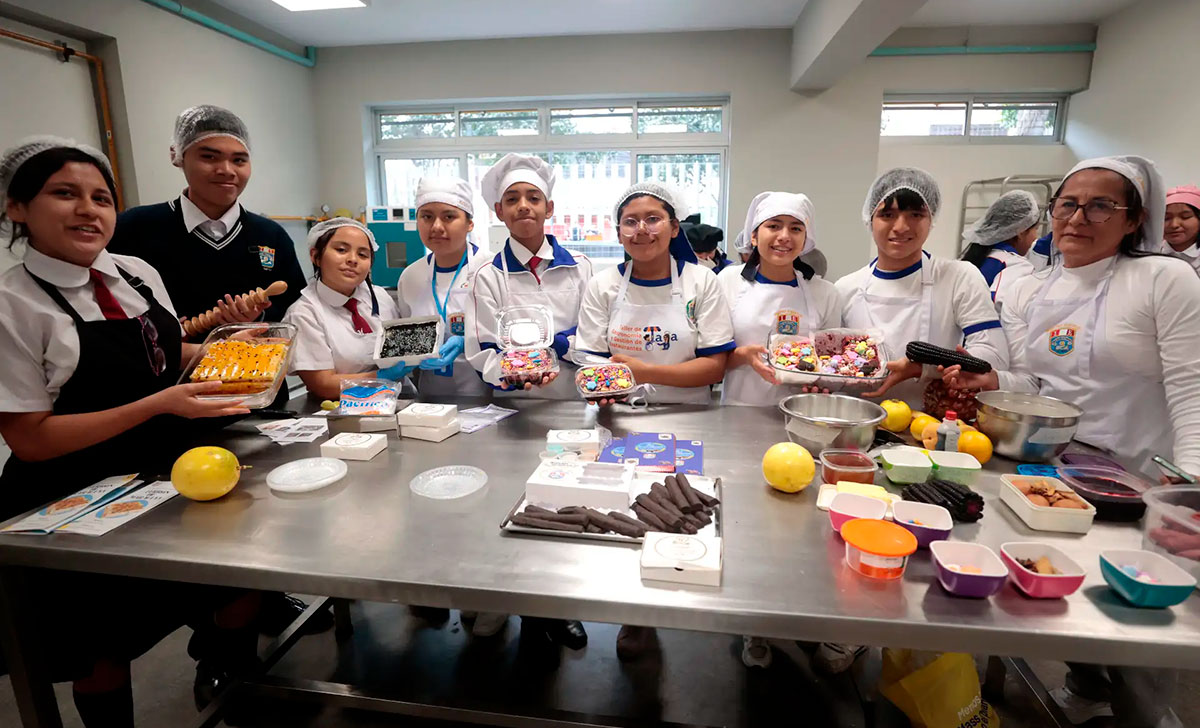 Este proyecto se desarrolló en el moderno y equipado Taller de Educación para el Trabajo, donde los estudiantes aplicaron sus conocimientos técnicos y capacidad de trabajo en equipo para la elaboración de la masa, la preparación de la miel de frutas y la decoración con grajeas de este tradicional postre limeño, con el que deleitaron a sus compañeros.