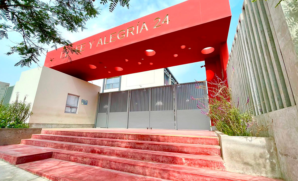 La comunidad educativa de la Escuela Bicentenario Fe y Alegría 24 ya viene disfrutando de su moderna infraestructura, ejecutada con los más altos estándares de construción, garantizando ambientes idóneos para los aprendizajes y desarrollo integral de más de 1400 estudiantes.