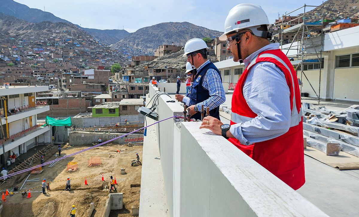 La comunidad educativa de la IE 0145 Independencia Americana pudo constatar el avance y la actual situación de la nueva infraestructura educativa con la que más de 2400 estudiantes de la zona de Huáscar, en San Juan de Lurigancho, contarán desde este año.