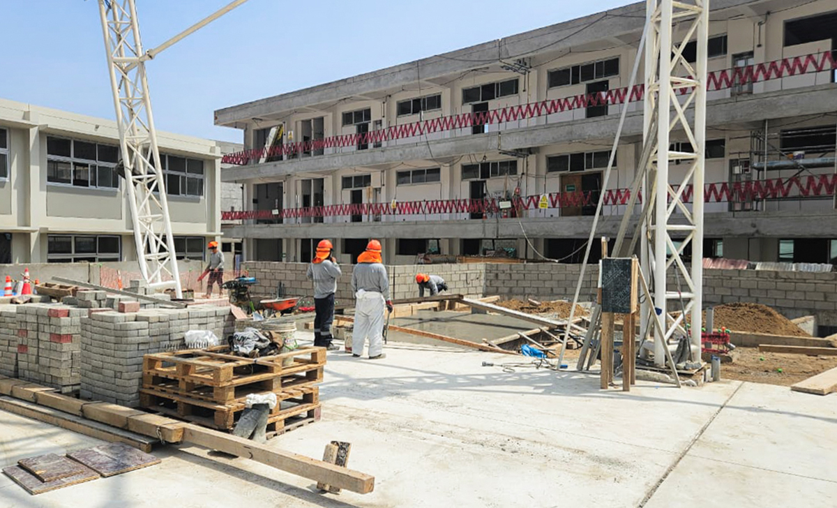 La construcción de la nueva Escuela Bicentenario Ramiro Prialé Prialé, en San Juan de Lurigancho, avanza de manera simultánea, tanto en la infraestructura como en el equipamiento y mobiliario, registrando progresos hacia su culminación.