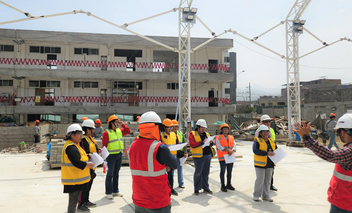 La comitiva de la comunidad realizó el recorrido por la obra, dirigidos por los especialistas e ingenieros, quienes explicaron los avances y lo que se estaba realizando para el desarrollo de la nueva infraestructura. Se mostraron ambientes como las aulas flexibles, aulas AIP, losas deportivas, entre otros espacios internos y externos.