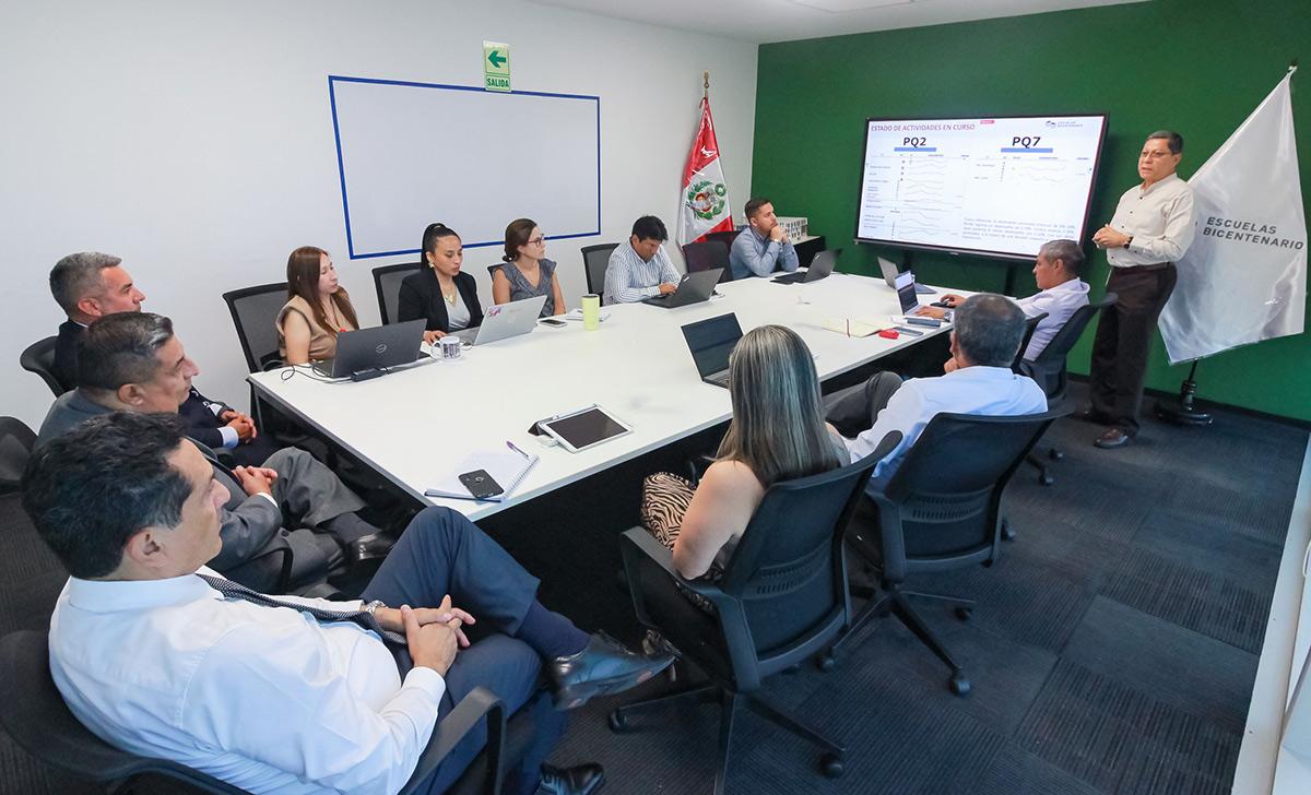 Durante la jornada, el viceministro se reunió con el director ejecutivo del PEIP, Alvaro Estrada, el director de Infraestructura Educativa, César Rojas, y el director de Gestión de Proyectos, Jorge Chui, quienes expusieron los principales hitos alcanzados en la planificación y ejecución de los proyectos.