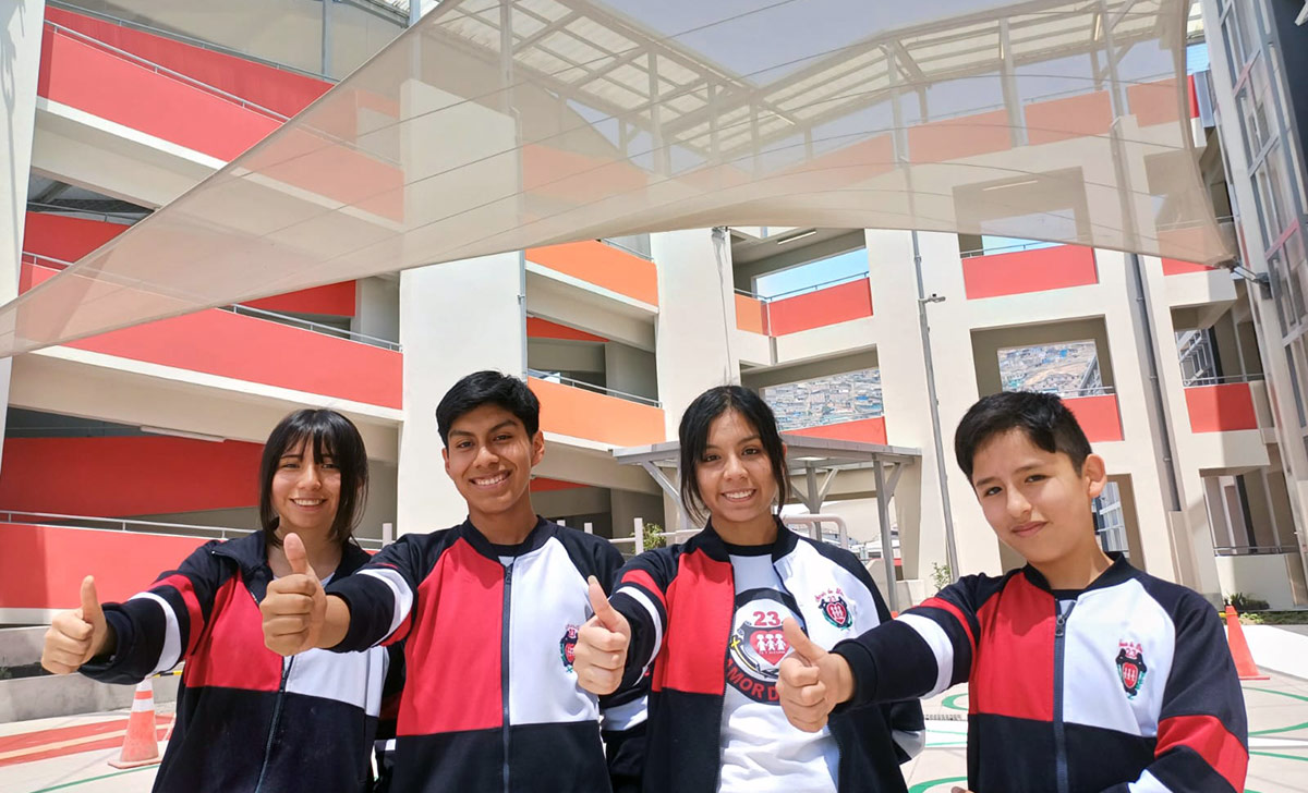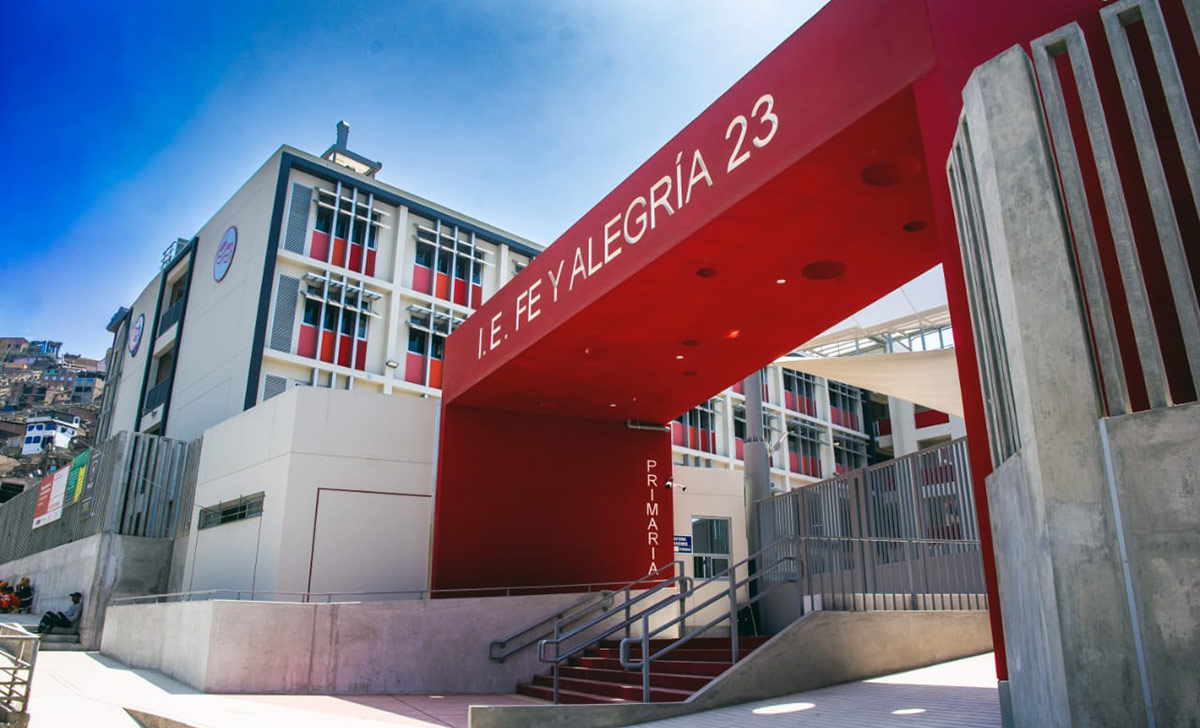 Más de 1440 estudiantes de primaria y secundaria, estudiarán en la moderna infraestructura de la institución educativa Fe y Alegría 23, ubicada en Villa María del Triunfo, construida con una inversión superior a los 93 millones de soles.