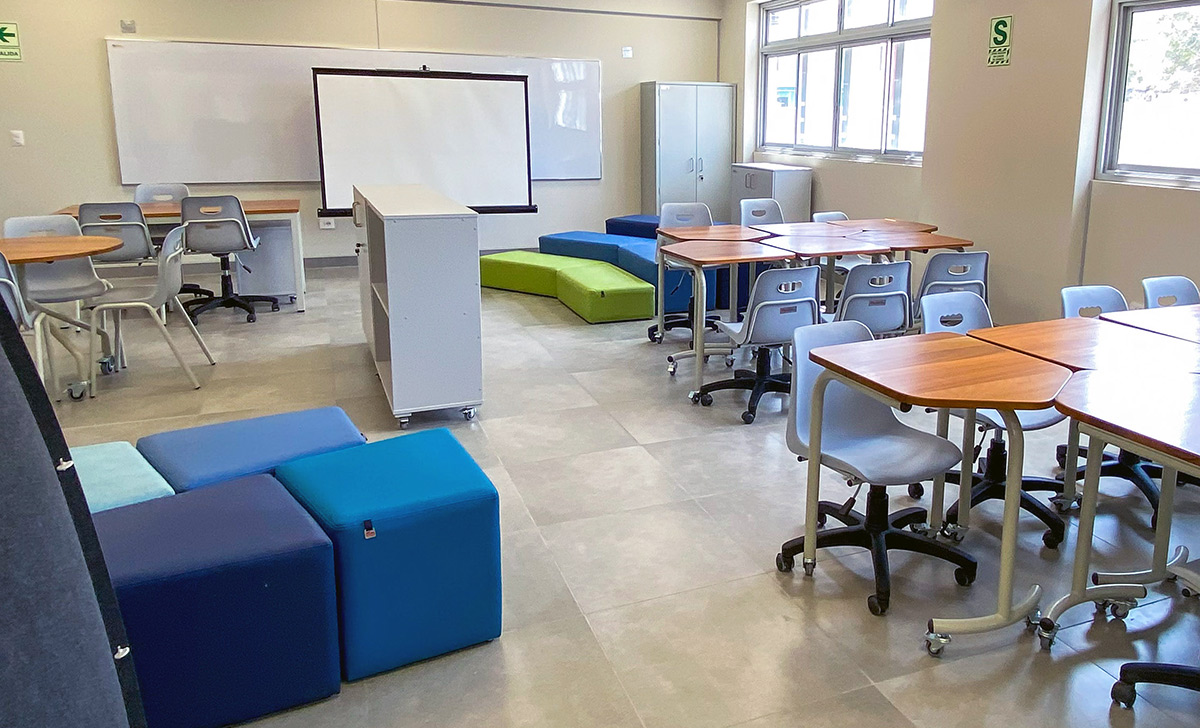 La nueva infraestructura educativa incluye aulas flexibles adaptables a distintas dinámicas pedagógicas, talleres de arte, laboratorio de Ciencia y Tecnología, y dos talleres de Educación para el Trabajo, equipadas con máquinas de cocer, sublimadoras y cortadora laser, entre otros equipos. En cuanto a las Aulas de Innovación Pedagógica (AIP) destacan por su equipos tecnológicos de última generación.